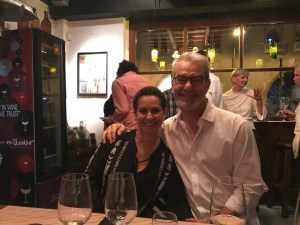 Then it was on to the reds (tintos). The first was a nice classic Tannat. It had all the flavors of Uruguay that I’ve been drinking these past few weeks. The second was my favorite. It was the red of the Ballena brand. It was a Tannat-Viognier. The grape is from France so of course Nathalie LOVED it. It had a super bold taste and lingered on the tongue. It is perfect for lamb. Finally, we topped off the evening with Equilibrio. It was a Tannat-Merlot. Because I liked the Bellena so much, I was not a huge fan. It would be fine for a table wine, but not after a more forceful flavor.