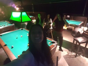 r and some tables right inside the door and two floors of pool tables. Men and women of all ages sit around drinking great drinks and playing pool while nineties music videos play in the background. It was pretty crowed on a Saturday night, so the Mujeres grabbed some drinks and talked about boys. You know, the usual. After an hour or so, our table was open.