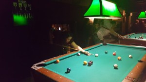 Unlike the states, you don’t put quarters into the tables. You pay for jagged coins that uniquely fit into the coin slot. Each coin (or game) is 50 pesos. The ladies split Americans vs Uruguayans. Now, I have a friend back in the states who is a pool queen. And being the competitive bitch that I am, I