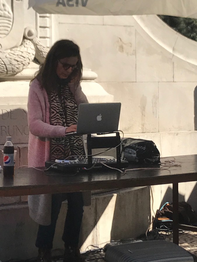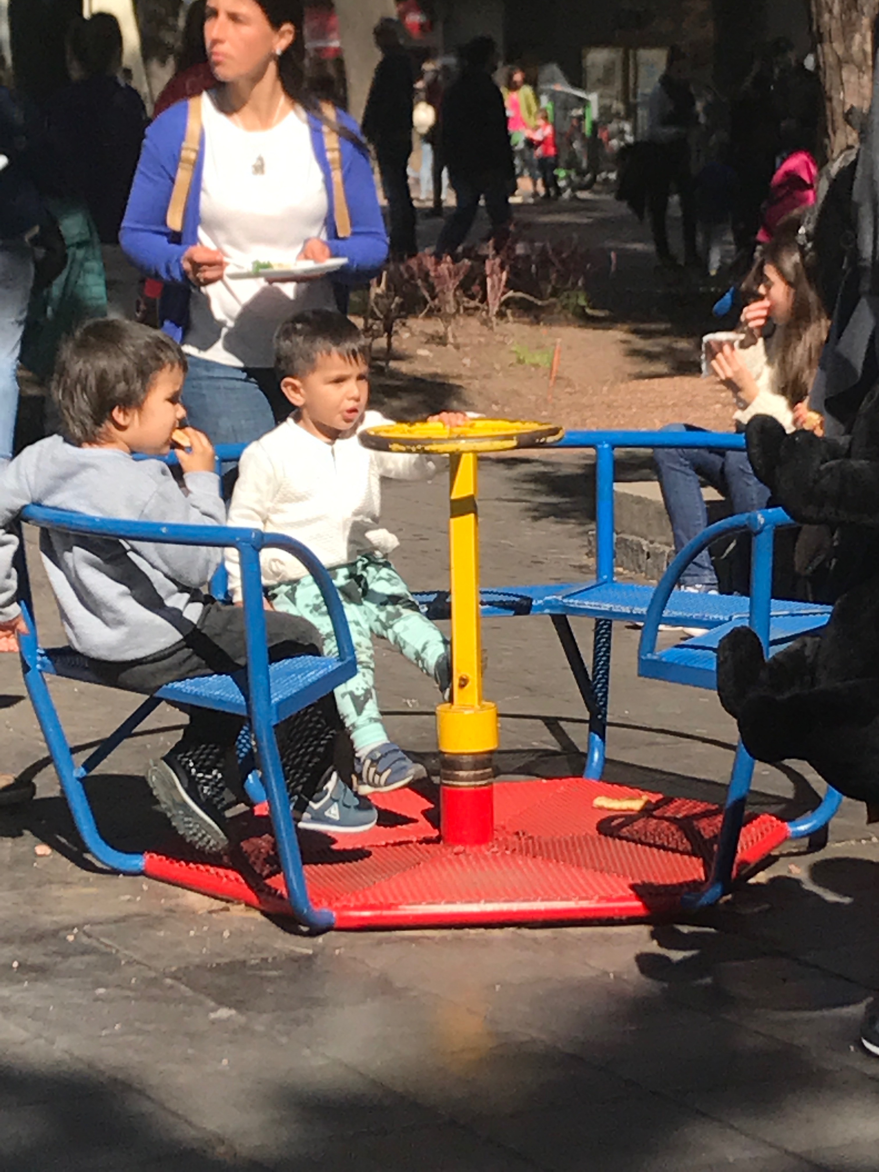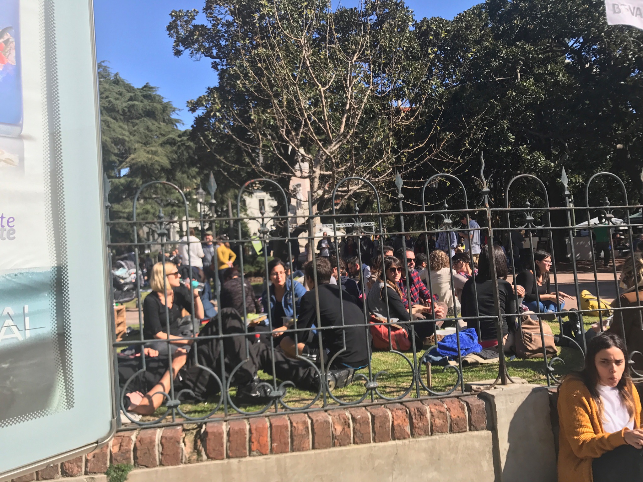 DJed music blared from speakers on the other side of the central statue in the park. Children laughed all around us turning the various park amenities into playground equiptment. Men and women walked around sipping mate. Every once in a while the pungent smell of weed wafted in the air. The sun warmed our outsides as the wine warmed our insides. It was a picture-perfect day.