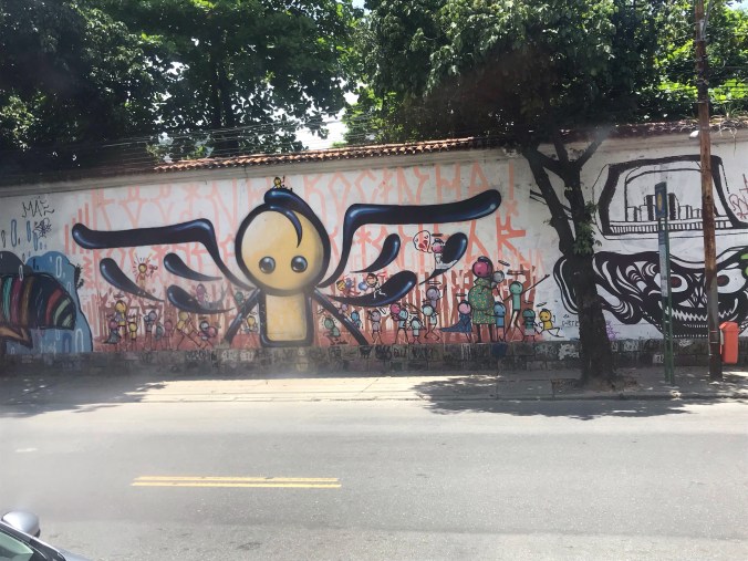 And why does the government not do anything about this? I saw massive government buildings, abandoned buildings, and beautiful houses with tags all over them. My first thought was some of those suckers are really high up and take made skills. My second thought was I hope someone ruined something beautiful to that person. There was this beautiful grey-stoned house, a personal resident, and the entire front fence had a tag on every stone. I was caught up in the majesty of the house and then disgusted as my eyes trickled down. Again, why does the owner not do something about this? If I’m going to be hones, I don’t really like the look of graffiti letters. They look so raw and crude to me. So, my love/hate relationship with graffiti continues. Rio is a city where at one point I am staring in awe at the talent and the very next second my brow is furrowed in disgust.