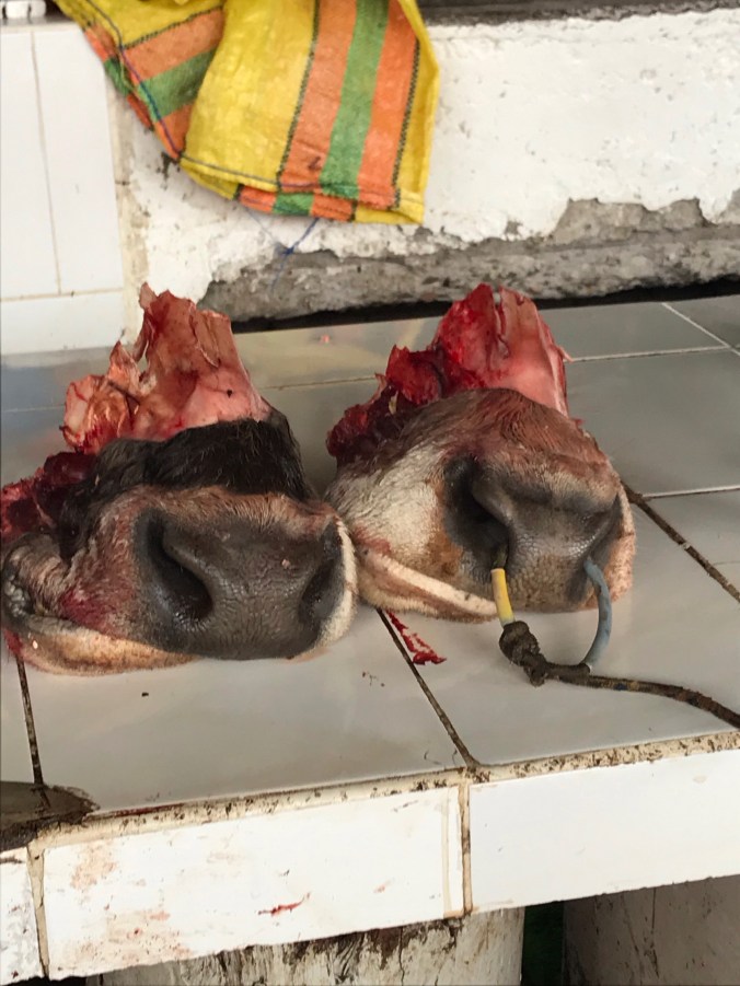 Then there was the market. Oh. My. God. The market literally has everything. First, there are the textile stalls, then the fruits and veggies stalls, the meat stalls, the flower stalls and finally the food stalls. And when I say this place has everything, it has everything. Whole pigs, cow snouts, medicinal plants – the further you walk into the market, the worse the smell. And all of the locals sit and eat their animal parts soups. What amazed me was that the soup stalls served in real bowls and used real metal cutlery. And when I say animal parts soup, I mean it. Everything was sticking out the soups. Now, I’m pretty adventurous when it comes to food, but even I had to pass this section. The market is loud and full, even on a Sunday at 9:00.