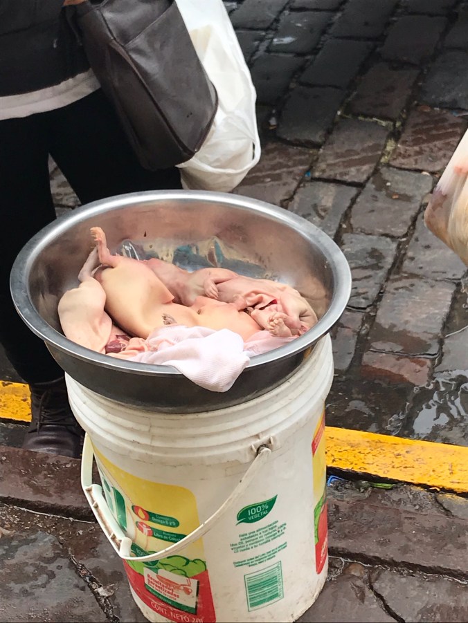Then there is outside the market. The perimeter is filled with local people selling their farmed goods. Women are selling mushrooms, vegetables and even plucked chickens all on the ground. This is also where people sell their “illegal” medicinal plants. Apparently one such plant makes you super horny and was outlawed by the Catholic Church because the Spanish were eating it and fornicating with the locals. Ha!